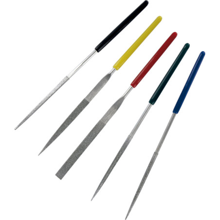 Zestaw diamentowych pilników o 5 różnych profilach, które doskonale nadają się do precyzyjnego piłowania tworzyw sztucznych i metali. Zapewniają one dłuższą żywotność i szybszą pracę niż w przypadku konwencjonalnych pilników, nie przegrzewają się i nie zapychają.