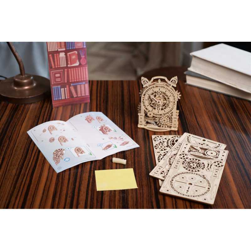 Ten drewniany model budzika DIY jest nie tylko atrakcyjnym eksponatem. Świadczy o tym dynamiczny ruch i elementy dźwiękowe, w tym staranne przełożenie wskazówek minutowych i godzinowych oraz zaskakujące włączenie klekotania alarmu. Nasze modele mechaniczne oraz STEM Lab są znane na całym świecie z pomysłowych mechanicznych działań i uroczych, niespodziewanych dodatków. Budzik Vintage rozszerza naszą kolekcję łatwych do złożenia modeli, co czyni go świetnym pomysłem na prezent dla dzieci i dorosłych szukających zabawnego, stosunkowo łatwego projektu do samodzielnego wykonania w domu w deszczowy dzień.