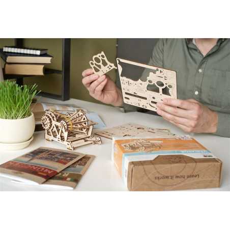 Modele Ugears STEM zostały zaprojektowane z myślą o różnych grupach wiekowych, ze szczególnym naciskiem na element edukacyjny. Montaż modelu będzie interesujący i nie zajmie dużo czasu.