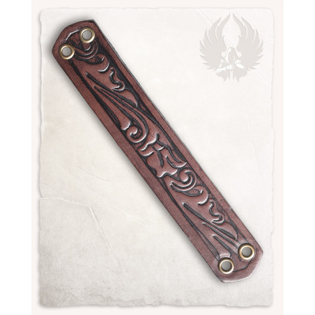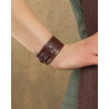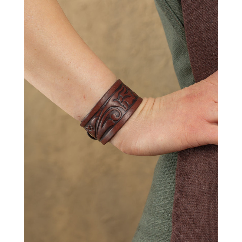WĄSKA SKÓRZANA BRANSOLETA - ROŚLINNY WZÓR - BRĄZOWA LARP