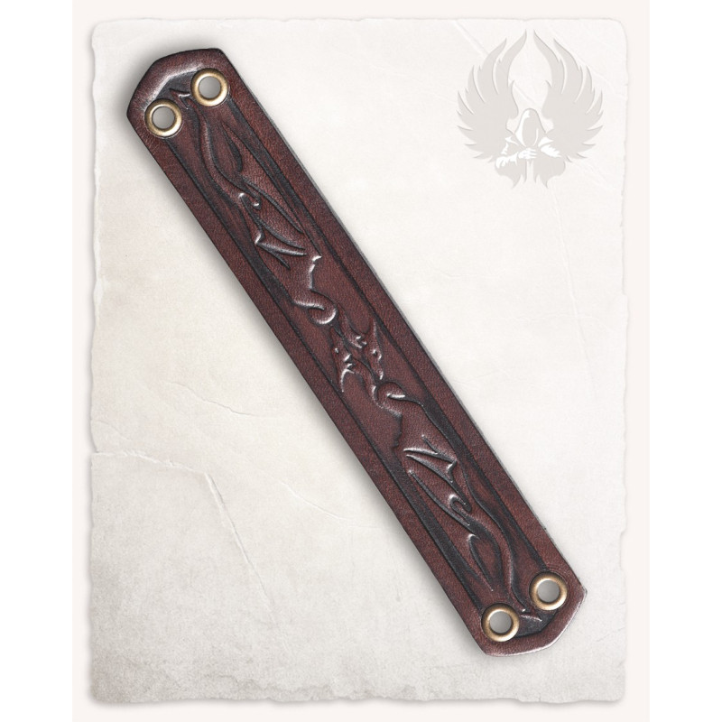WĄSKA SKÓRZANA BRANSOLETA - SMOCZY WZÓR - BRĄZOWA LARP