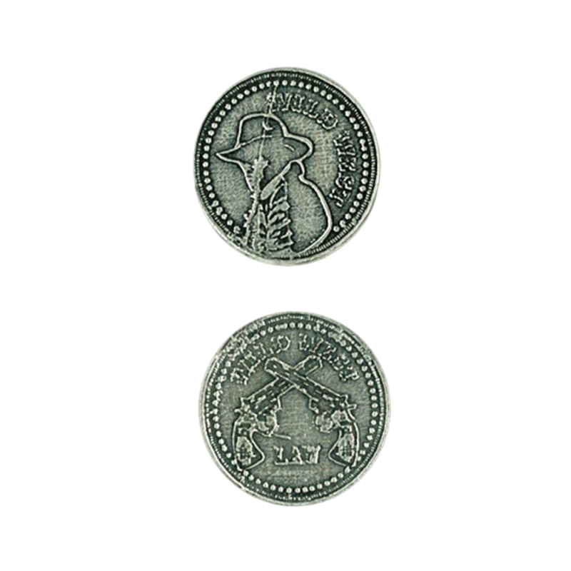 Wykonane ze stopów cynku cudowne, ciężkie monety, które przedstawiają motywy związane z dzikim zachodem.