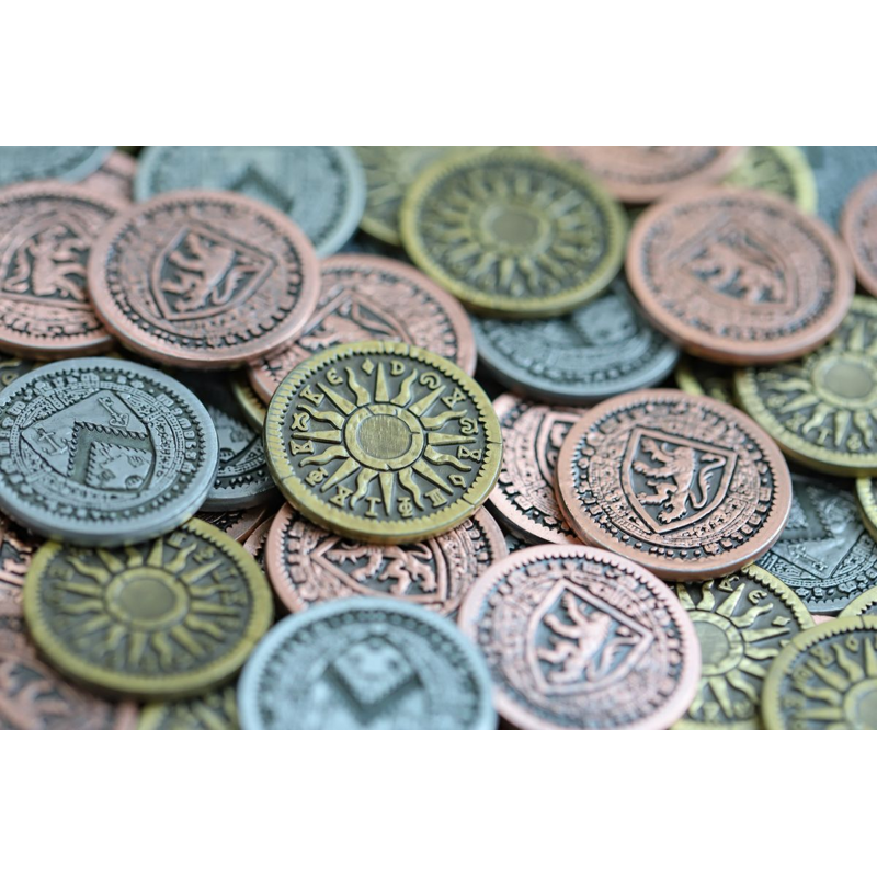 Metalowe monety są dość ciężkie. Waga żetonów jest dodatkowym czynnikiem budującym realizm w trakcie gry.