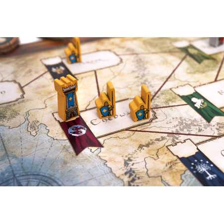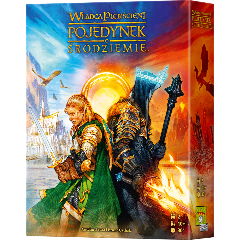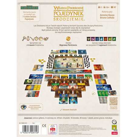 Pokieruj Drużyną Pierścienia, aby bronić wolnych ras i zniszczyć Jedyny Pierścień albo wciel się w Saurona ścigającego Froda i Sama, wysyłając swoje hordy pod bramy wrogich miast. Władca Pierścieni: Pojedynek o Śródziemie to wyjątkowa gra strategiczna oparta na zasadach popularnego 7 Cudów Świata: Pojedynek. Rozwijaj strategie i poprowadź swoje siły do walki, ale zachowaj ostrożność. W tym epickim pojedynku aż trzy drogi prowadzą do natychmiastowego zwycięstwa: możesz sprzymierzyć się z sześcioma rasami, ukończyć Wyprawę Pierścienia lub zaznaczyć swoją obecność we wszystkich regionach Śródziemia.