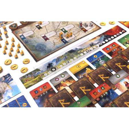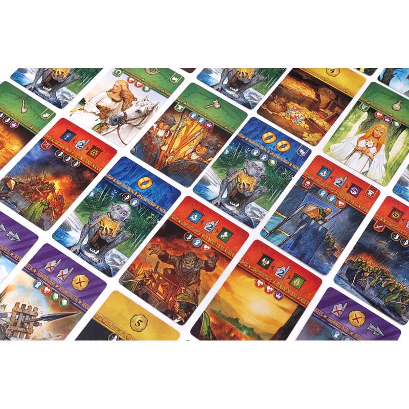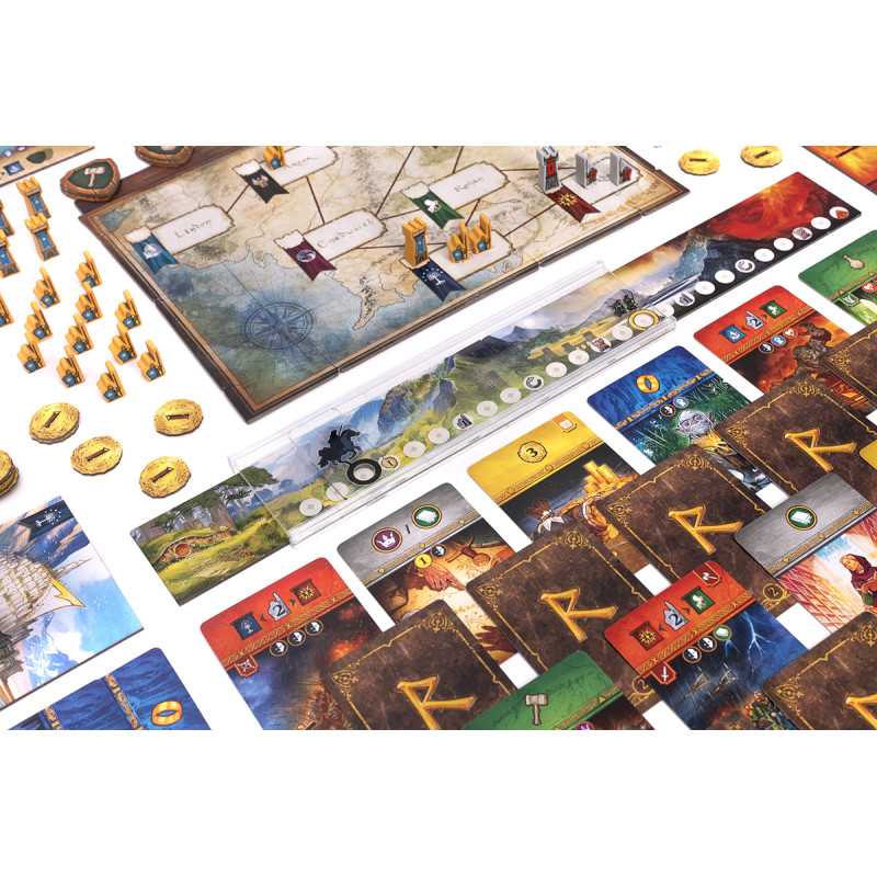 Rozgrywka obejmuje trzy następujące po sobie rozdziały, które przebiegają w podobny sposób. Na samym początku karty danego rozdziału są wykładane w określonym układzie, w ramach którego część z nich jest odkryta, a część zakryta. Następnie gracze kolejno rozgrywają tury aż do momentu, gdy któryś dobierze ostatnią kartę lub spełni jeden z warunków końca gry. W swojej turze możemy wykonać jedną z dwóch akcji: Wziąć kartę rozdziału spośród dostępnych (nieprzykrytych innymi) kart w układzie. Następnie możemy opłacić jej ewentualny koszt, zagrać ją i skorzystać z efektu lub odrzucić kartę, by zyskać monety. Wziąć płytkę ważnego miejsca. Po opłaceniu jej kosztu umieszczamy twierdzę na planszy głównej w regionie odpowiadającym zakupionej płytce i korzystamy z jej efektów. W zależności od koloru, karty zapewniają różne bonusy. Szare reprezentują umiejętności, którymi opłacamy koszt kart i płytek, żółte zapewniają monety, niebieskie pozwalają przesuwać się na torze Wyprawy Pierścienia, gdzie ścigamy się z przeciwnikiem, zielone pozwalają nawiązywać sojusze z rasami Śródziemia, a czerwone umożliwiają rozmieszczanie jednostek. W ostatnim rozdziale są też dostępne specjalne, fioletowe karty o potężnych efektach. Gracz wygrywa natychmiast, gdy spełni któryś z warunków zwycięstwa: Ukończy Wyprawę Pierścienia (Sauron musi dogonić Froda i Sama, ci z kolei starają się dotrzeć do wulkanu). Sprzymierzy się z sześcioma rasami Śródziemia, zbierając je na zielonych kartach. Podbije Śródziemie, czyli będzie obecny w każdym z siedmiu regionów (dzięki twierdzy lub przynajmniej jednej jednostce). Jeśli przed końcem trzeciego rozdziału żaden z graczy nie spełni żadnego z warunków zwycięstwa, wygrywa ten, kto jest obecny w większej liczbie regionów Śródziemia.
