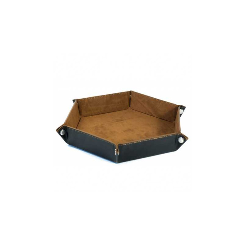 • Dice tray 23 cm wykonany ze skóry i aksamitu. Doskonały wybór aby utrzymać kostki w jednym miejscu i wygłuszyć dźwięk ich toczenia się. Dice tray jest wykonany ze skóry, a w środku wyłożony aksamitem. W narożnikach znajdują się wytrzymałe, metalowe napy dzięki którym możemy płaską matę zmienić w miseczkę do rzucania kośćmi. Materiał: Skaj