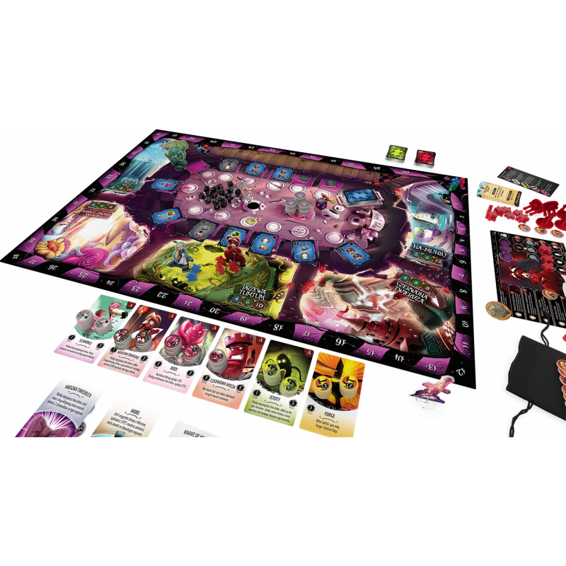 AIicja powróciła, ale Kraina Czarów straciła swój urok i stała się śmiertelnie poważna. Dżabbersmok szaleje, Królowa Kier pragnie krwi, a Kapelusznik nalega, by jak najszybciej wszyscy przyszli na jego herbatkę!Chwyć w dłoń swoje zabójcze ostrze i dołącz do walki w tej asymetrycznej grze wykorzystującej mechaniki budowania worka i kontrolowania obszarów!Zawartość 1 plansza Krainy Czarów5 plansz frakcji1 kość odłamków254 żetonów19 pionków i podstawek1 instrukcja1 karta pomocy25 znaczników zamków35 drewnianychznaczników40 odłamków5 woreczków strunowych60 dużych kart(70 mm x 120 mm)24 mieszkańcówKrainy Czarów21 sprzymierzeńców10 kart zdolnościsprzymierzeńców5 kart pomocy gracza50 standardowych kart(63 mm x 88 mm)30 zadań20 zakładów90 małych kart herbatki(44 mm x 67 mm)Liczba graczy 2-5Czas 30 min. na graczaWiek 14+