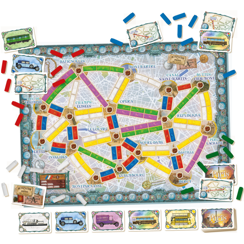 W tej dynamicznej odsłonie gry Wsiąść do Pociągu gracze ścigają się o to, kto zwiedzi najwięcej kultowych punktów turystycznych w stolicy Francji i przy okazji zrealizuje swoje bilety. Aby wygrać, musimy nie tylko zmyślnie korzystać z rozwijającej się w Paryżu sieci transportu miejskiego, lecz także wybierać połączenia, dzięki którym będziemy mogli świętować kolejną rocznicę zdobycia Bastylii.