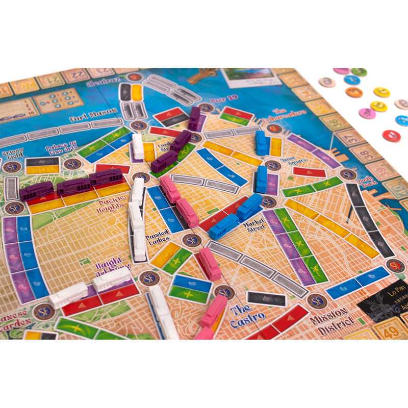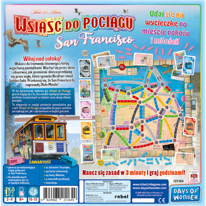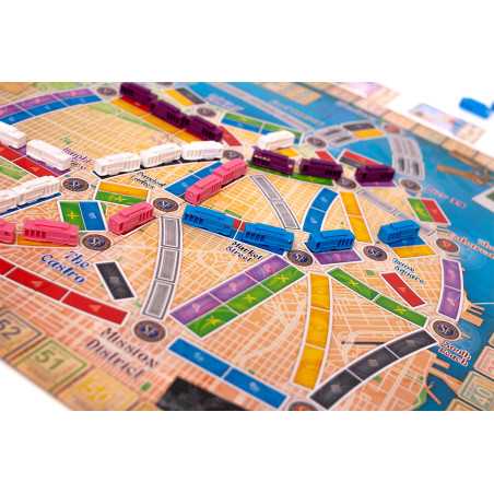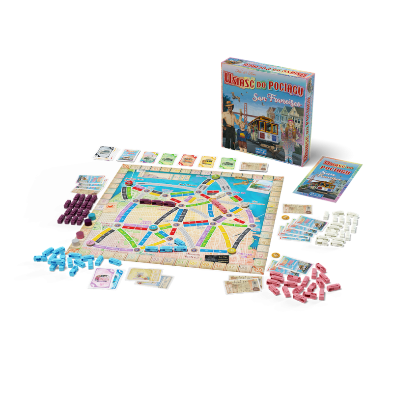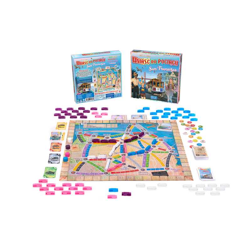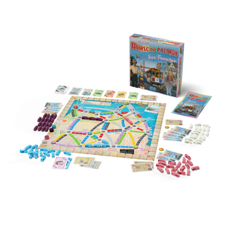 Wsiąść do Pociągu: San Francisco to dynamiczna odsłona popularnej serii gier rodzinnych, w której ścigamy się o to, kto zwiedzi najwięcej punktów turystycznych w mieście i zbierze najcenniejsze pamiątki. Kolorowe karty lokomocji pozwolą nam tworzyć połączenia na mapie i realizować cenne bilety, które zapewnią nam punkty na koniec gry.