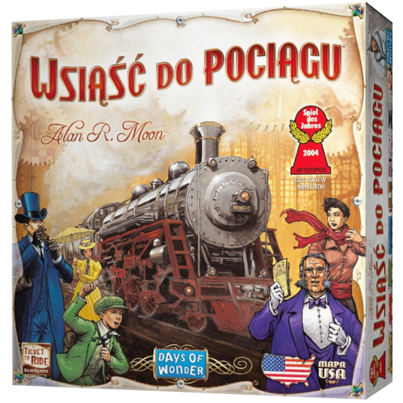2. października 1900 roku. 28 lat wcześniej londyński ekscentryk Phileas Fogg wygrał swój słynny zakład o podróż w 80 dni dookoła świata. Teraz, u progu nowego wieku nadszedł czas na nową "niewiarygodną podróż". Starzy przyjaciele, którzy zebrali się by uczcić wygraną Fogga podejmują nowe wyzwanie. Stawka - 1 milion dolarów - zwycięzca bierze wszystko. Cel: kto może odwiedzić koleją najwięcej miast w Ameryce Północnej, w 7 dni! Przygoda rozpoczyna się już teraz... Wsiaść do Pociągu: USA zdobyła prestiżową nagrodę "Gra Roku" (Spiel des Jahres)  - została oceniona przez grono ekspertów za najlepszą grę wydaną w roku 2004. Od tego czasu pozostaje jedną z najwyżej ocenianych gier planszowych na świecie!