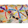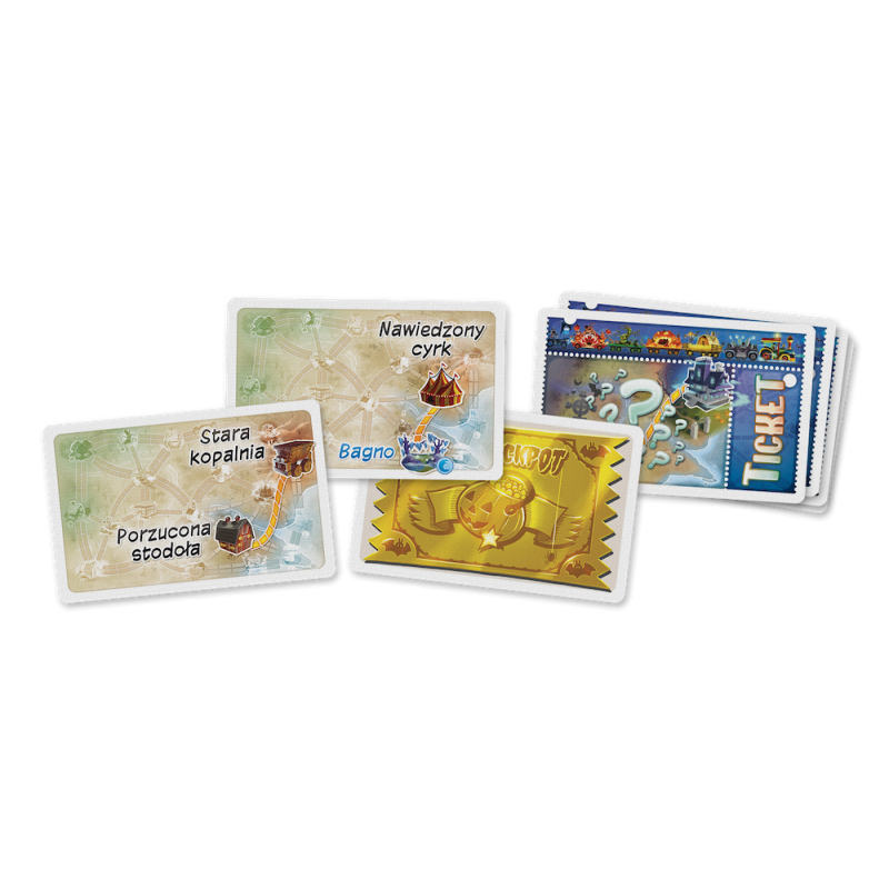 Na samym początku gry wszyscy uczestnicy otrzymują po 2 karty biletów. To nasze cele – wskazują miejsca na mapie Koszmarkowa, które będziemy chcieli ze sobą połączyć.