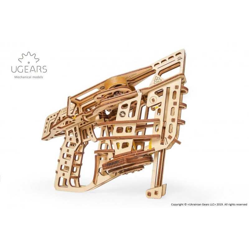 Unikalny projekt połączył fantazje na temat przygód kosmicznych oraz ciekawą mechanikę w konstrukcji, przypominającej z jednej strony krążownik międzygwiezdny, z drugiej zaś blaster z fantastycznego filmu akcji. Wszystkie te kosmiczne technologie są realizowane w tradycyjnym Ugearowskim stylu steampunk skeleton, który pozwalają zajrzeć do środka konstrukcji i ocenić działanie mechanizmu. Ergonomiczna konstrukcja Wyrzutni Samolotów pozwala wygodnie trzymać ją w ręce i starannie wycelować.