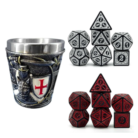 Wybierz komplet kości z tacką do rzucania, aksamitnym woreczkiem pod kolor, monetami, albo zmywalną matą. Obdaruj kogoś zestawem nietypowych kostek, które świecą w ciemności lub całym niezbędnikiem gadżetów RPG – w sam raz dla początkującego i zaawansowanego gracza!