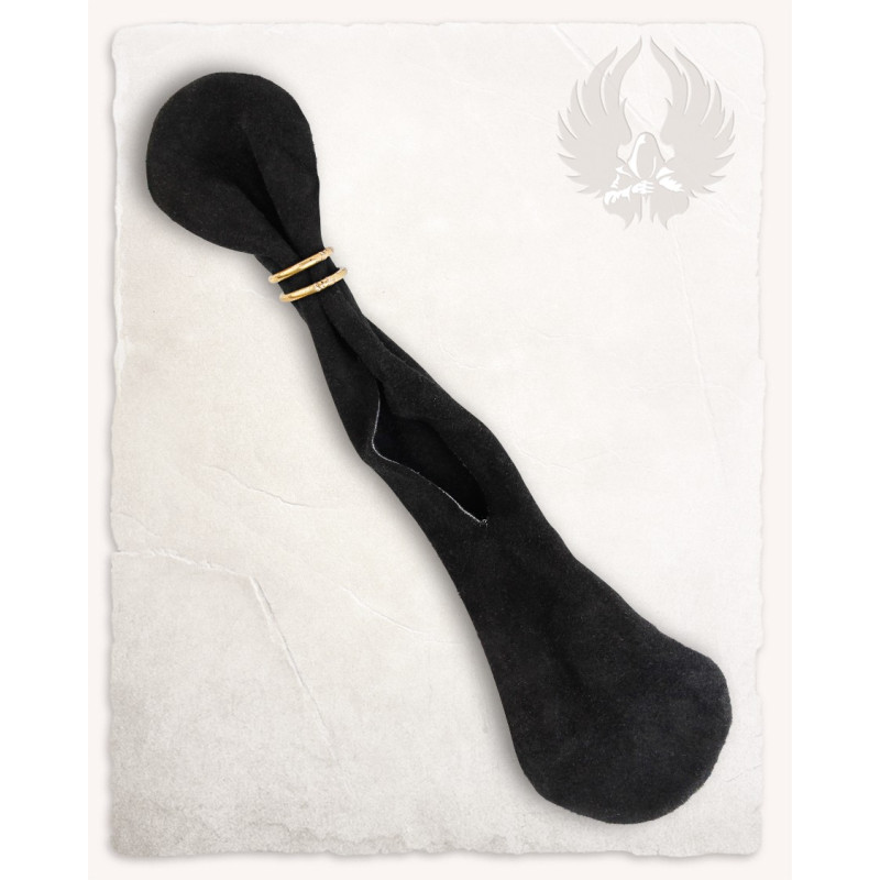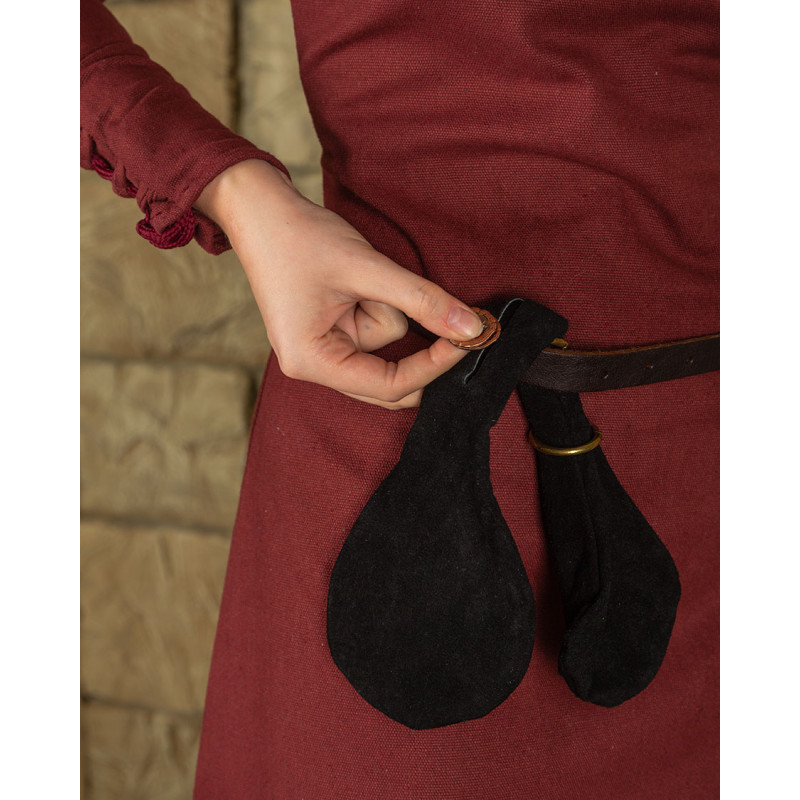 Nasza „Denarius” Geldkatze wykonana jest z miękkiego zamszu i zamykana przy pomocy dwóch masywnych mosiężnych pierścieni.