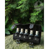 Pięć fiolek zamykanych naturalnym korkiem mieści się w tej sakiewce wykonanej z zamszu.