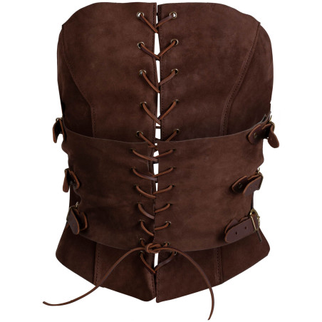 Naturalny zamsz nadaje gorsetowi wyrafinowany wygląd, dzięki czemu sprawdzi się zarówno na polu bitwy, jak i podczas dworskich wydarzeń.