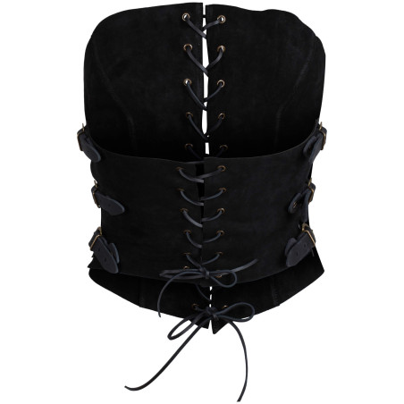 Naturalny zamsz nadaje gorsetowi wyrafinowany wygląd, dzięki czemu sprawdzi się zarówno na polu bitwy, jak i podczas dworskich wydarzeń.