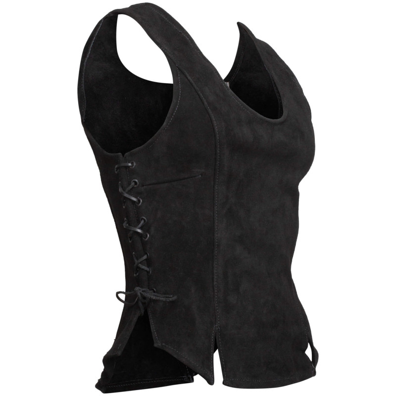 Prosty, ale efektowny skórzany gorset, który można dopasować do sylwetki dzięki sznurowaniom po bokach.