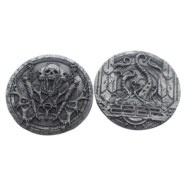 Wykonana ze stopów cynku precyzyjnie zdobiona moneta, którą wydobyliśmy z zapomnianego skarbca.