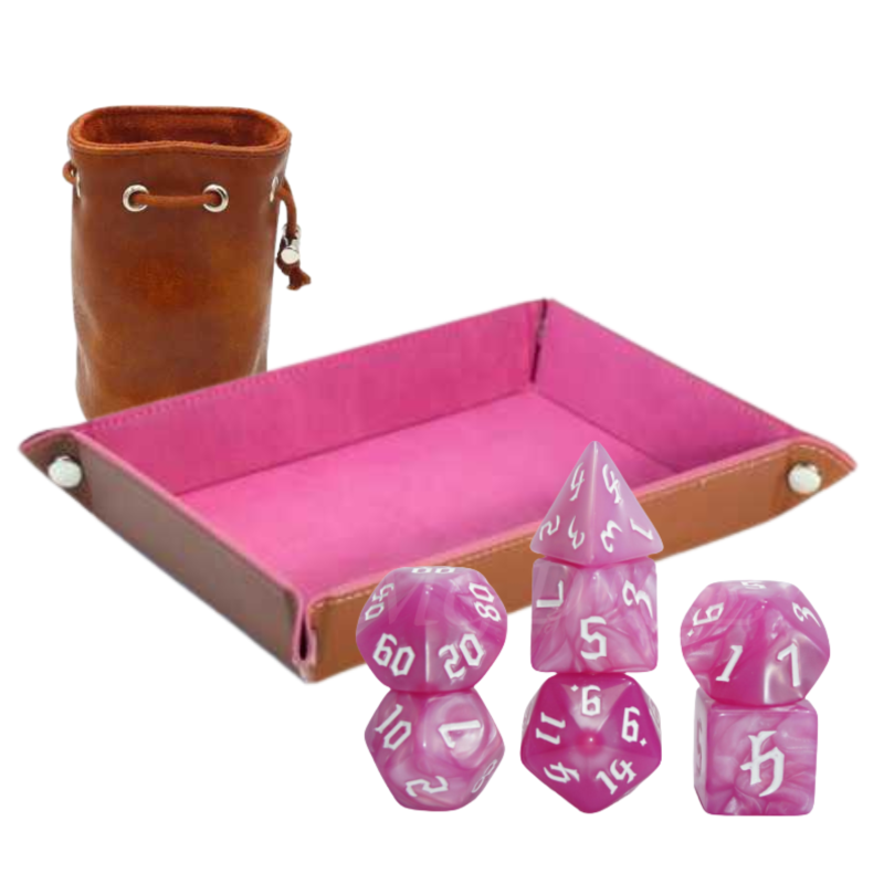 Wybierz komplet kości z tacką do rzucania, aksamitnym woreczkiem pod kolor, monetami, albo zmywalną matą. Obdaruj kogoś zestawem nietypowych kostek, które świecą w ciemności lub całym niezbędnikiem gadżetów RPG – w sam raz dla początkującego i zaawansowanego gracza!