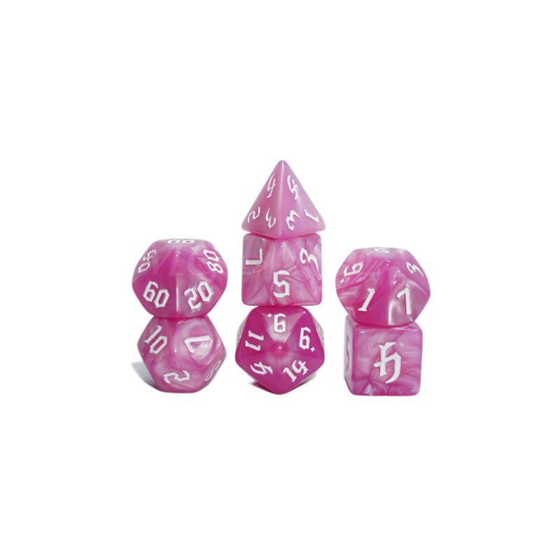 • Zestaw 7 kości wykonanych z akrylu. Idealnie nadają się do każdego systemu i dla każdego gracza.
