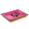• Dice tray 22x16 cm wykonany ze skóry i aksamitu. Doskonały wybór aby utrzymać kostki w jednym miejscu i wygłuszyć dźwięk ich toczenia się. Dice tray jest wykonany ze skóry, a w środku wyłożony aksamitem. W narożnikach znajdują się wytrzymałe, metalowe napy dzięki którym możemy płaską matę zmienić w miseczkę do rzucania kośćmi. Materiał: Skaj