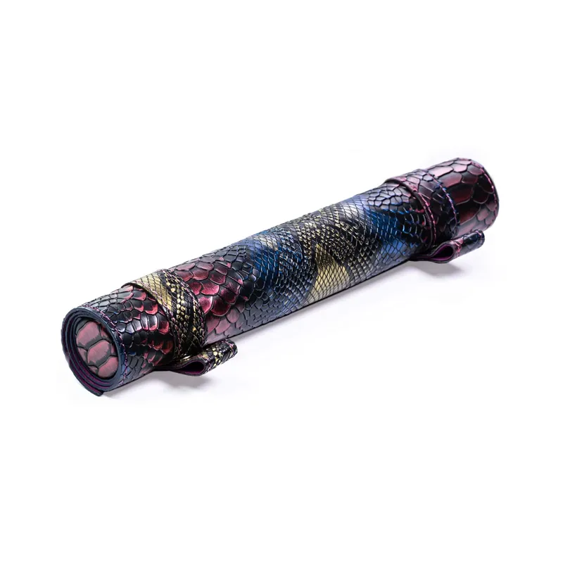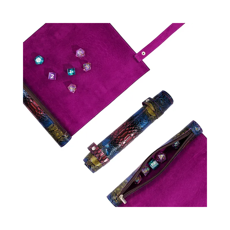 • Elegancki dice tray. Doskonały wybór aby utrzymać kostki w jednym miejscu i wygłuszyć dźwięk ich toczenia się.Zestaw 7 kości wykonanych z żywicy. Idealnie nadają się do każdego systemu i dla każdego gracza. Dice tray jest wykonany ze skóry. Posiada kieszeń zamykaną na zamek, w której możemy przetransportować kostki. Całość można rozwinąć tworząc matę do rzucania kośćmi lub grania w karty. Wymiary rozłożonego: 31*25.4cm Wymiary złożonego: 25.4*4cm Materiał: Skaj