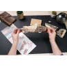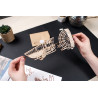 Możesz pozostawić Zeppelina w jego atrakcyjnym stanie z naturalnego drewna lub pokolorować, pomalować lub zabejcować swój model w wybranej przez siebie kolorystyce (farby nie są dołączone). W przeciwieństwie do tradycyjnych puzzli, które muszą być przyklejone do podstawy, a następnie zamontowane w ramce, jeśli chcesz zachować i wyeksponować swoją pracę, Twoje puzzle Zeppelin 2,5D dostarczane są we własnej ramce, z podstawkami na nogi i uchwytem na zdjęcie.