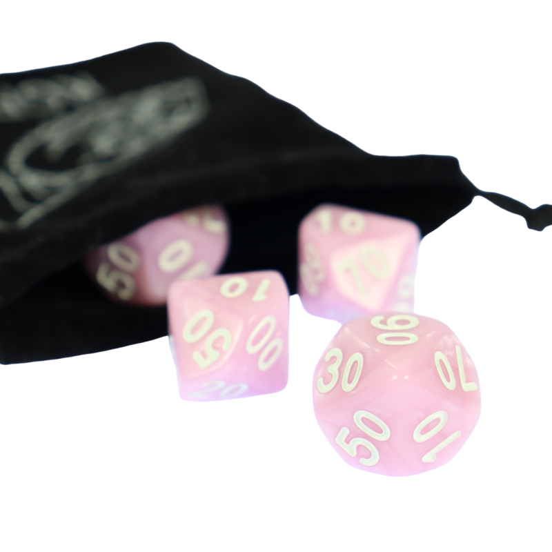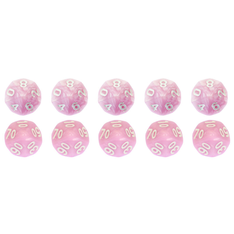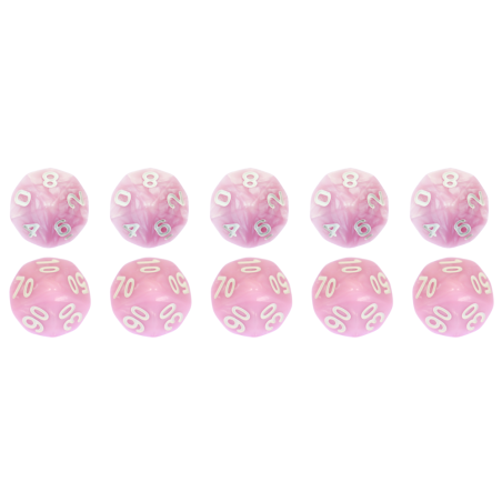 Komplet dziesięciu kości dziesięciościennych numerowanych 0-9 i 00-90. Niezwykle wysoka jakość odlewu, precyzja żłobienia oraz malowania numerów czynią z nich podstawowy wybór dla wielu graczy, zarówno początkujących, jak i zaawansowanych.
