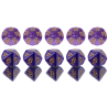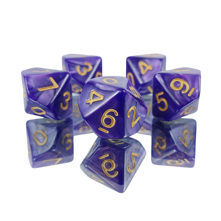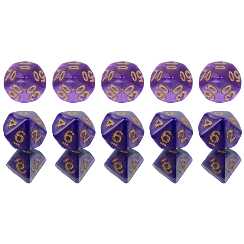 Komplet dziesięciu kości dziesięciościennych numerowanych 0-9 i 00-90. Niezwykle wysoka jakość odlewu, precyzja żłobienia oraz malowania numerów czynią z nich podstawowy wybór dla wielu graczy, zarówno początkujących, jak i zaawansowanych.