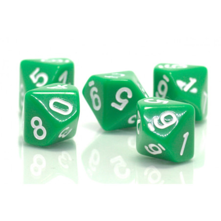 Zestaw 10 Kostek K10 0-9 + 00-90 RPG Kość Dziesięciościenna Zielona