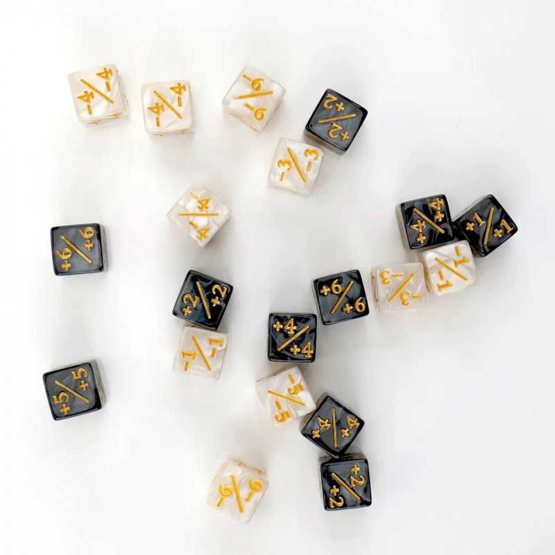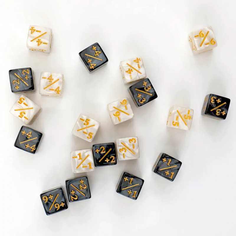 Zestaw 10 Kostek K6 1,6 cm RPG Licznik Bonusów Pozytyw + Negatyw do Magic: The Gathering (MTG)