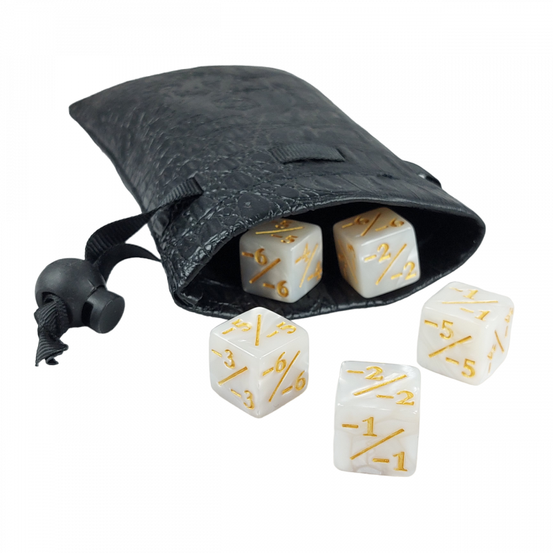 Zestaw 10 kostek - 5x pozytyw i 5x negatyw - służących do gry w Magic: The Gathering (MTG).