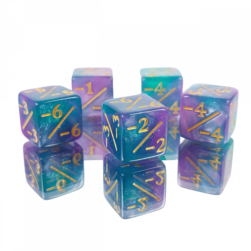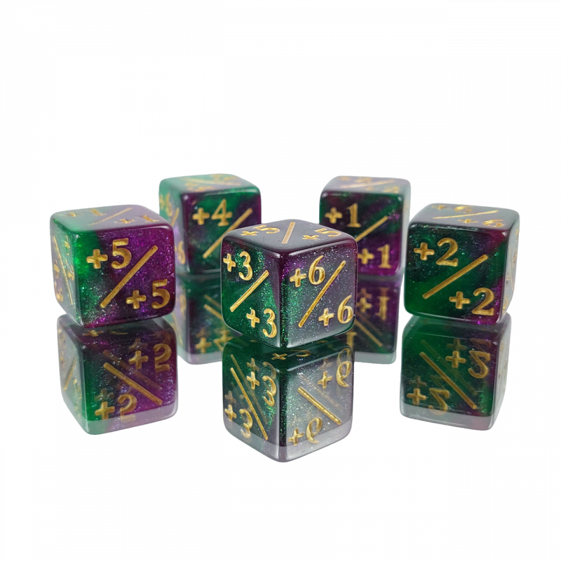 Zestaw 10 Kostek K6 1,6 cm RPG Licznik Bonusów Pozytyw + Negatyw do Magic: The Gathering (MTG)