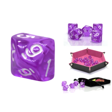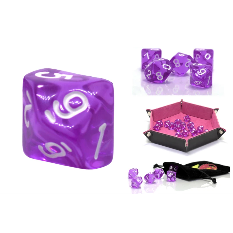 Komplet dziesięciu kości K4 K6 K8 K10 K00 K12 K20. Niezwykle wysoka jakość odlewu, precyzja żłobienia oraz malowania numerów czynią z nich podstawowy wybór dla wielu graczy, zarówno początkujących, jak i zaawansowanych.