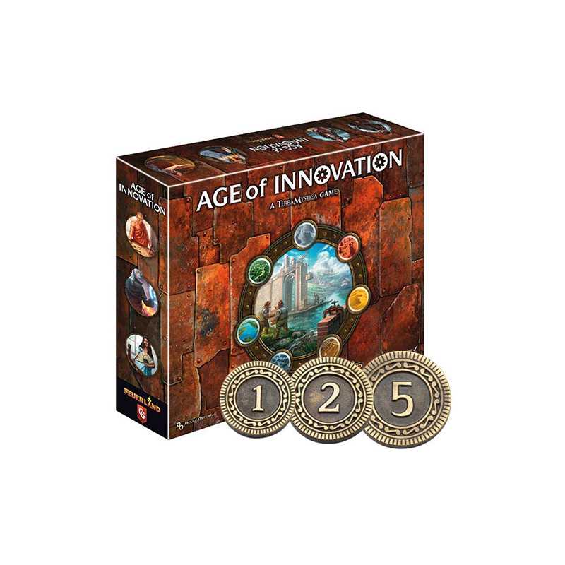 Wykonane z metalu cudowne monety dedykowane do planszówki Age of Innovation.