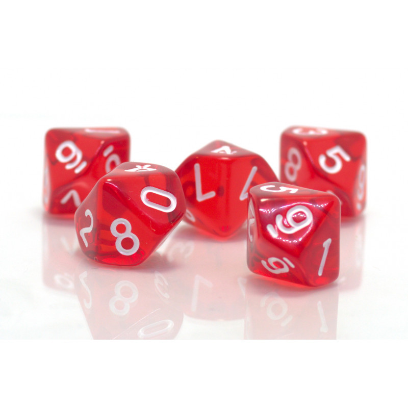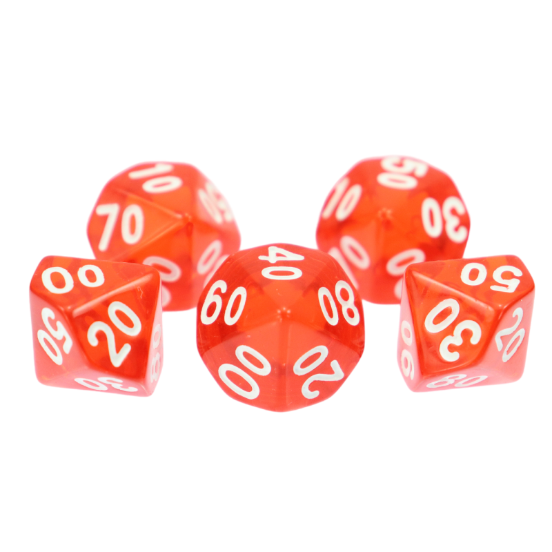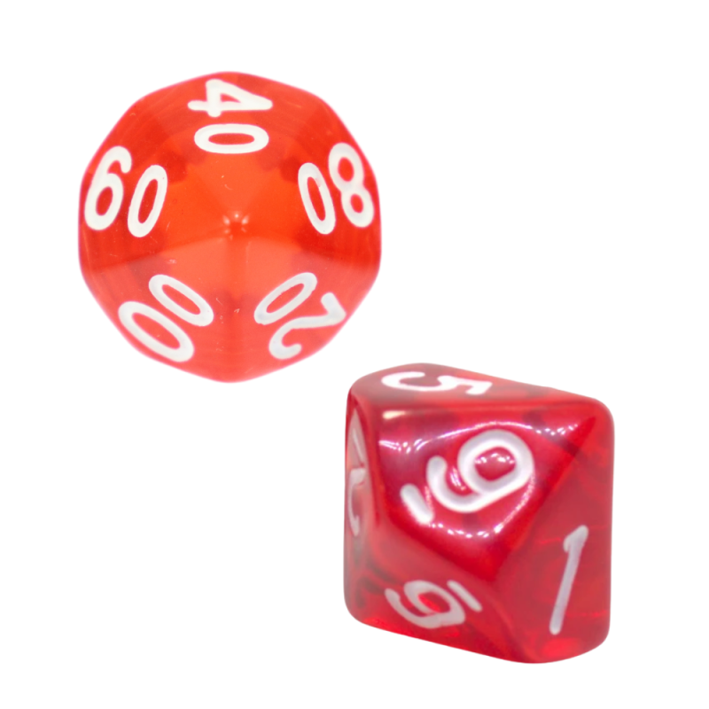 Komplet dwóch kości dziesięciościennych numerowanych 0-9 i 00-90. Niezwykle wysoka jakość odlewu, precyzja żłobienia oraz malowania numerów czynią z nich podstawowy wybór dla wielu graczy, zarówno początkujących, jak i zaawansowanych.