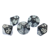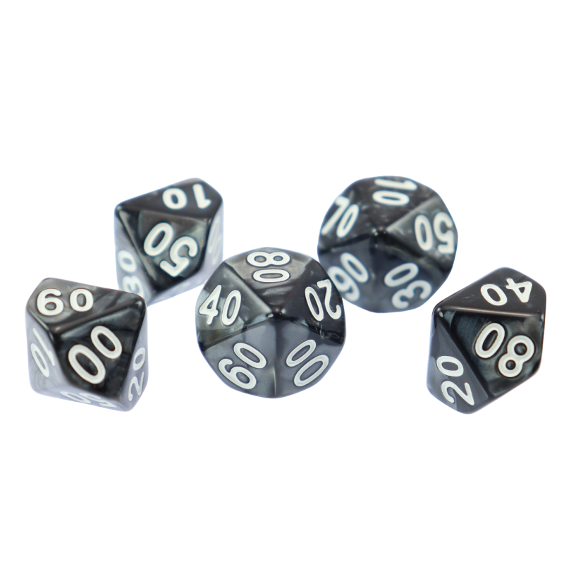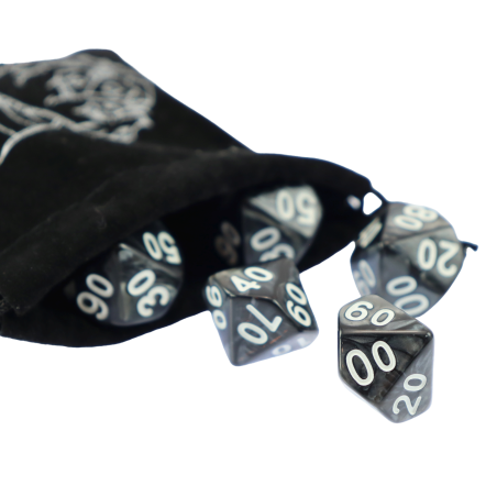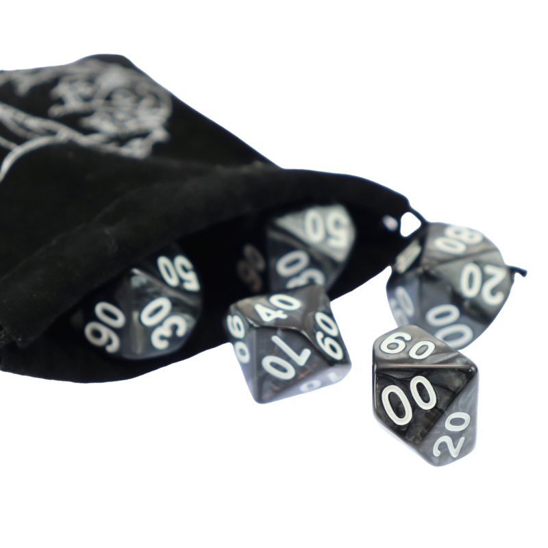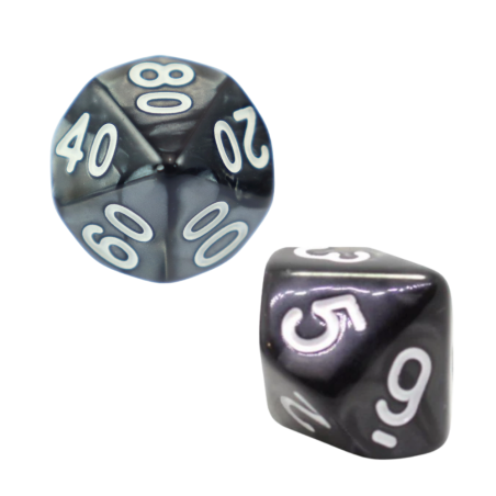 Komplet dwóch kości dziesięciościennych numerowanych 0-9 i 00-90. Niezwykle wysoka jakość odlewu, precyzja żłobienia oraz malowania numerów czynią z nich podstawowy wybór dla wielu graczy, zarówno początkujących, jak i zaawansowanych.