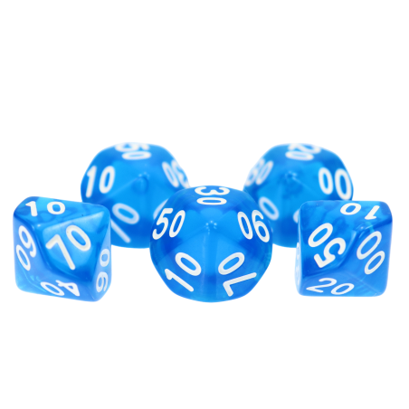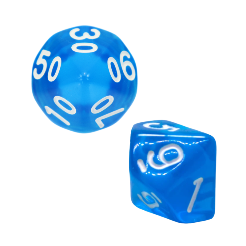 Komplet dwóch kości dziesięciościennych numerowanych 0-9 i 00-90. Niezwykle wysoka jakość odlewu, precyzja żłobienia oraz malowania numerów czynią z nich podstawowy wybór dla wielu graczy, zarówno początkujących, jak i zaawansowanych.