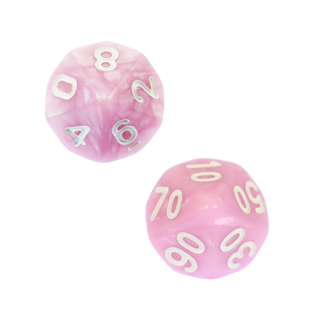 Komplet dwóch kości dziesięciościennych numerowanych 0-9 i 00-90. Niezwykle wysoka jakość odlewu, precyzja żłobienia oraz malowania numerów czynią z nich podstawowy wybór dla wielu graczy, zarówno początkujących, jak i zaawansowanych.