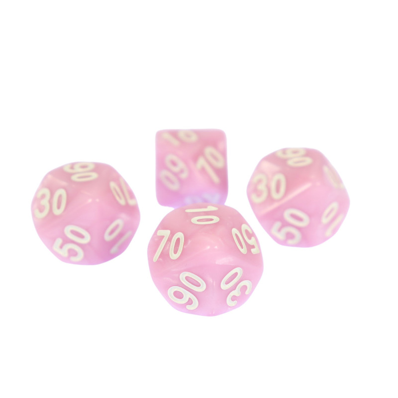 Zestaw 2 Kostek K10 0-9 + 00-90 RPG Kość Dziesięciościenna Różowe Promienie