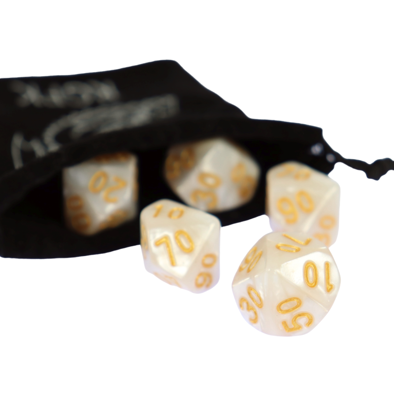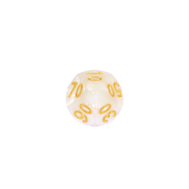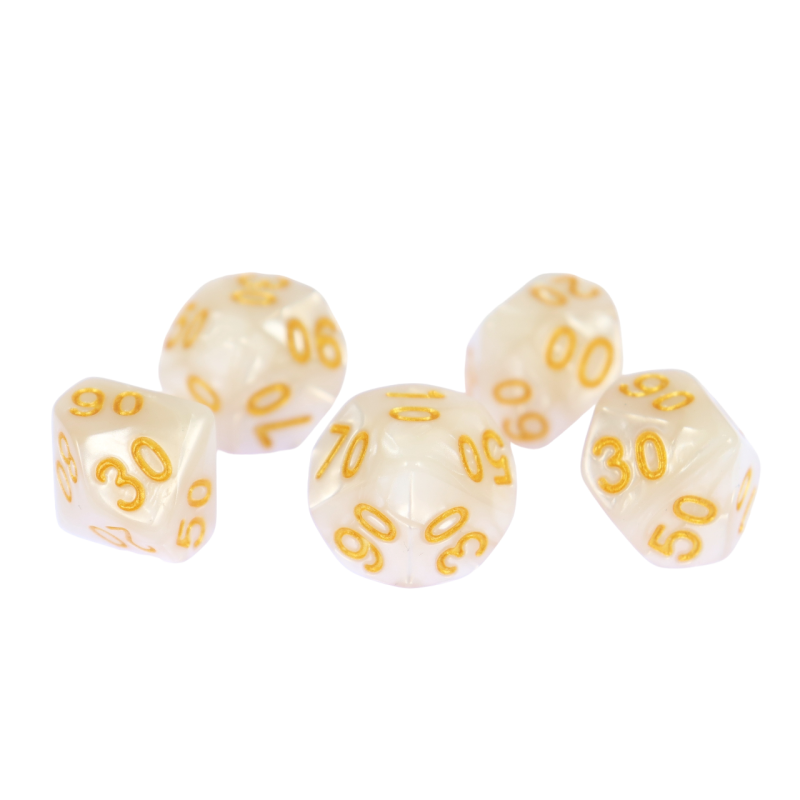 Komplet dwóch kości dziesięciościennych numerowanych 0-9 i 00-90. Niezwykle wysoka jakość odlewu, precyzja żłobienia oraz malowania numerów czynią z nich podstawowy wybór dla wielu graczy, zarówno początkujących, jak i zaawansowanych.
