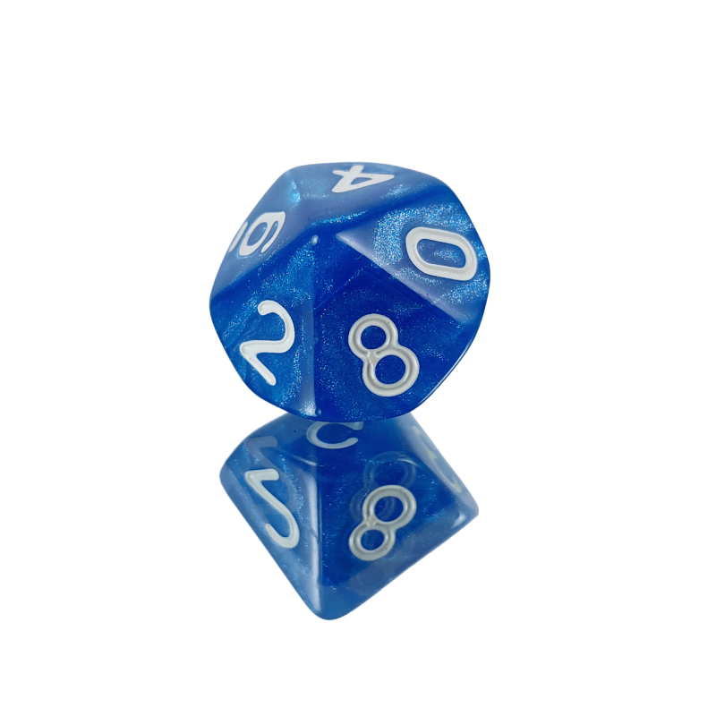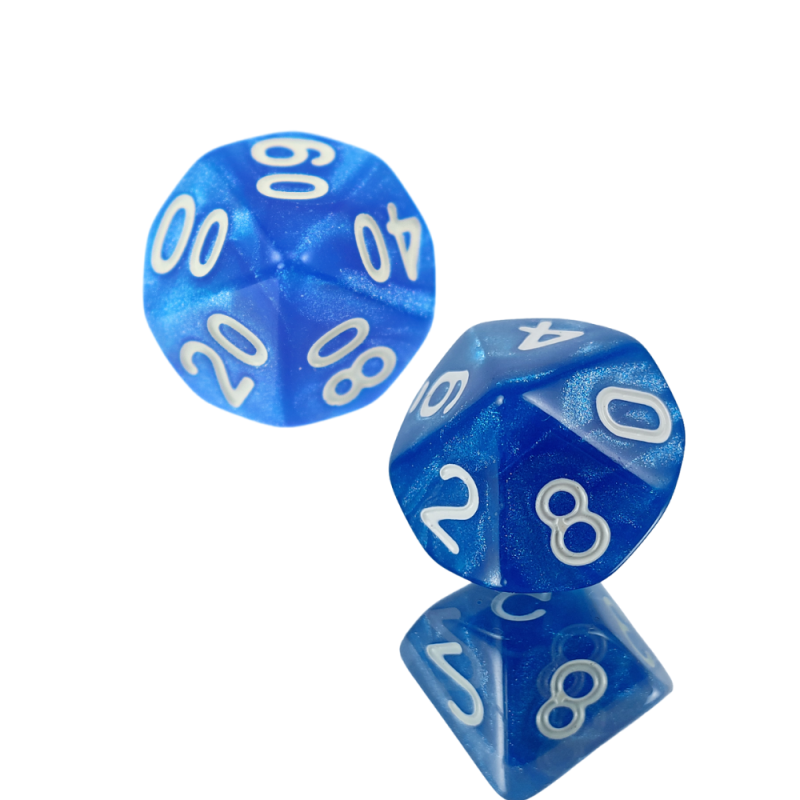 Komplet dwóch kości dziesięciościennych numerowanych 0-9 i 00-90. Niezwykle wysoka jakość odlewu, precyzja żłobienia oraz malowania numerów czynią z nich podstawowy wybór dla wielu graczy, zarówno początkujących, jak i zaawansowanych.