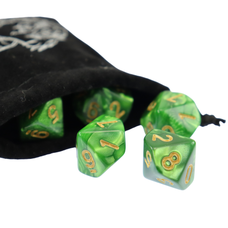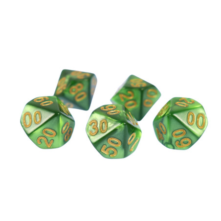 Komplet dwóch kości dziesięciościennych numerowanych 0-9 i 00-90. Niezwykle wysoka jakość odlewu, precyzja żłobienia oraz malowania numerów czynią z nich podstawowy wybór dla wielu graczy, zarówno początkujących, jak i zaawansowanych.