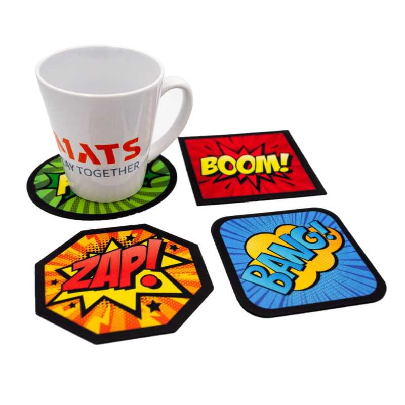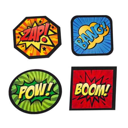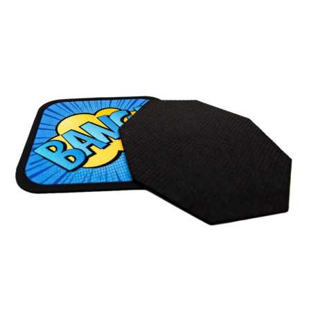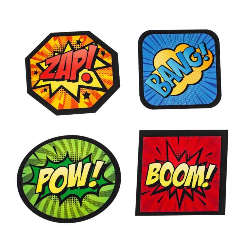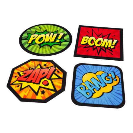 Wysokiej jakości gumowe, antypoślizgowe podkładki pod kubek z motywem komiksowym. Podkładki są miękkie i elastyczne, można je łatwo przechowywać lub przenosić nawet w kieszeni, a w przypadku zabrudzenia lub zalania napojem bardzo prosto je wysuszyć, wyczyścić lub nawet wyprać w pralce. Zestaw podkładek to idealny prezent dla każdego miłośnika komiksów. Komplet zawiera 4 sztuki.