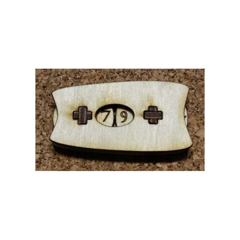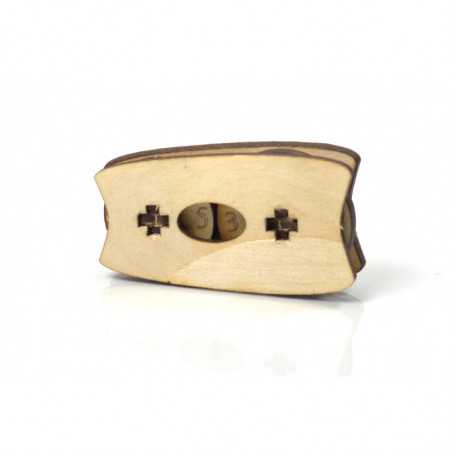 Zestaw 5 drewnianych liczników życia. Są to niewielkie gadżety do śledzenia różnych zmiennych w karciankach, planszówkach i RPGach.