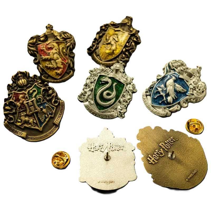 Zestaw 5 Metalowych Przypinek Harry Potter - Herby Hogwartu i Domów