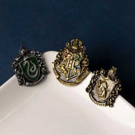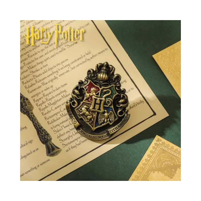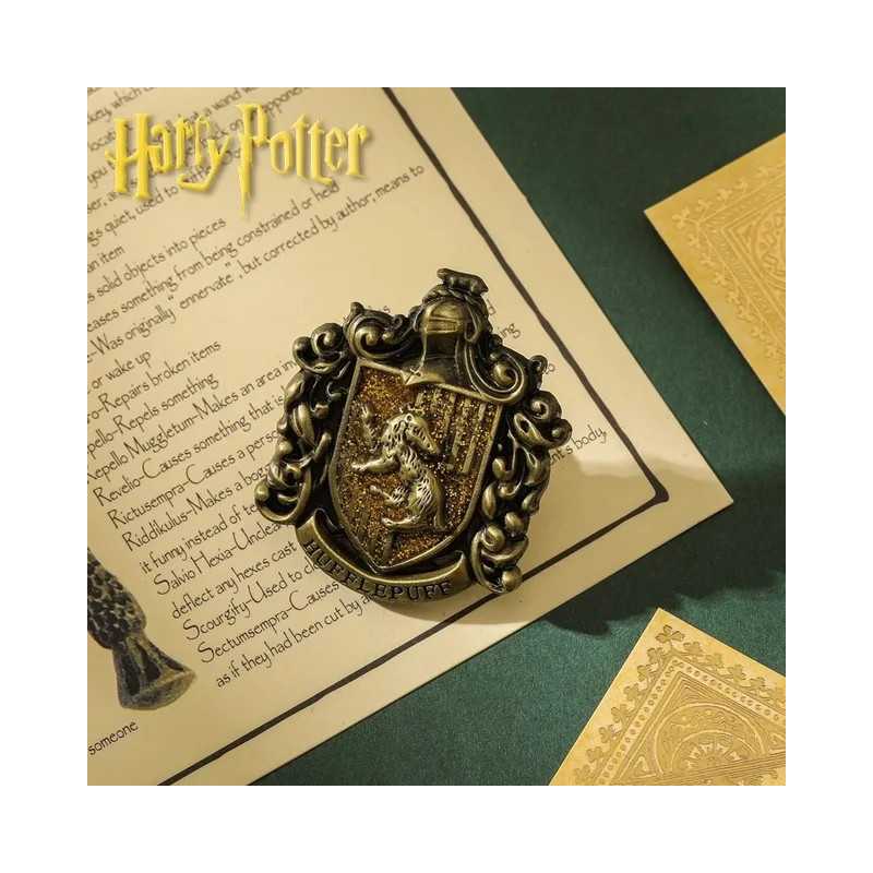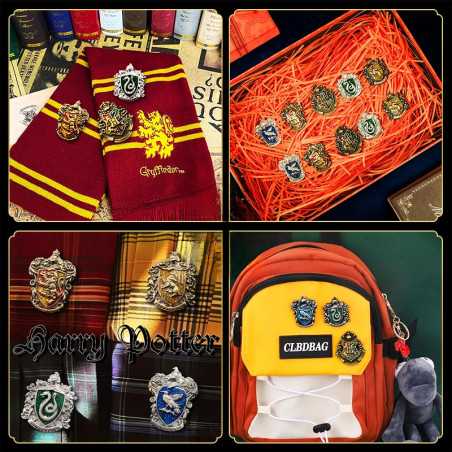 Zestaw metalowych przypinek z herbami wszystkich czterech domów Hogwartu oraz herbu szkoły to doskonały komplet dla każdego fana Harry'ego Pottera. Zawiera pięć przypinek, z których każda przedstawia unikalny herb: Gryffindoru, Slytherinu, Hufflepuffu, Ravenclawu oraz samego Hogwartu. Każdy herb jest precyzyjnie wykonany, z dbałością o szczegóły i kolorystykę charakterystyczną dla danego domu. Zestaw ten jest idealny do ozdobienia odzieży, plecaka lub innych akcesoriów, umożliwiając noszenie swoich ulubionych symboli z dumą. To także świetny pomysł na prezent dla miłośników magii i przygód w świecie czarodziejów.