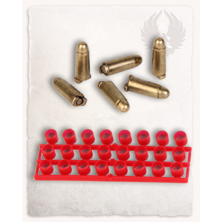 Ten zestaw sześciu atrap nabojów pozwala na załadowanie kapiszonów do naszych rewolwerów „Denix”. Wystarczy umieścić kapiszon na tylnej części naboju i załadować rewolwer jak prawdziwą broń, co zapewnia bardziej realistyczne doświadczenie podczas użytkowania. Nabojami można również ozdobić pas lub kapelusz, dodając klimatu rekonstrukcjom historycznym i LARP-om.