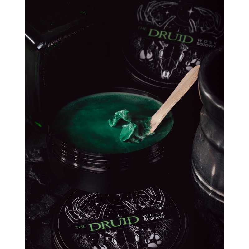 The druid to sojowy wosk zapachowy o rześkim aromacie zielonych traw, liści szałwii i grejpfruta wzbogaconych świeżymi akordami tymianku, morskich minerałów oraz ozonu. Całość spoczywa na ciepłej, lekkiej bazie z drzewa sandałowego, gwajakowca i paczuli.
